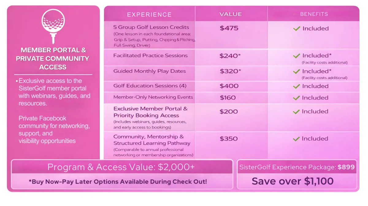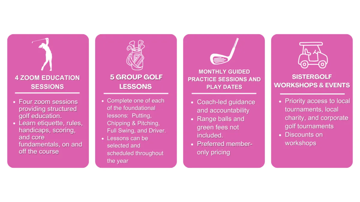SisterGolf Swag: Receive a complimentary SisterGolf-branded gift upon joining.